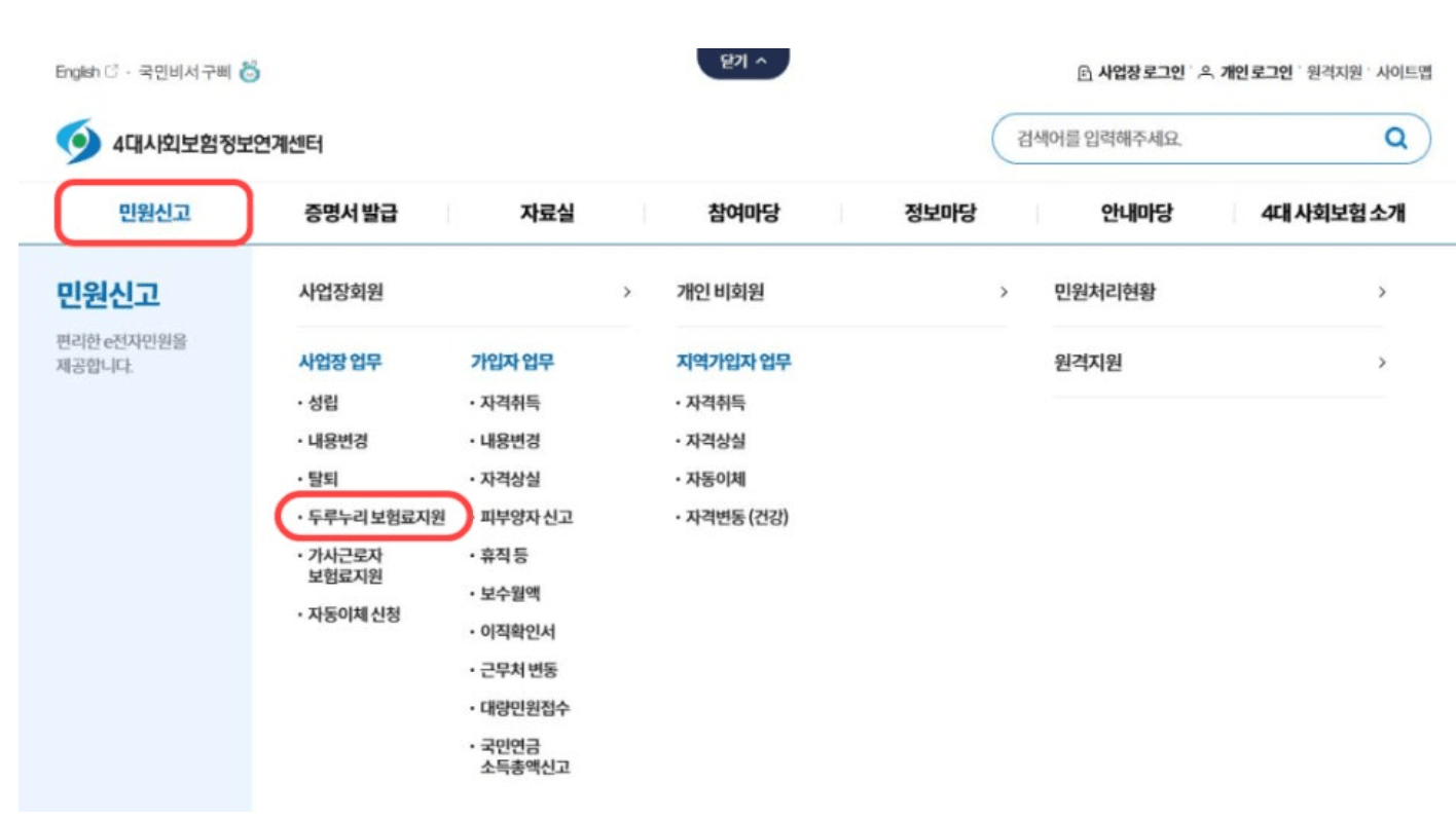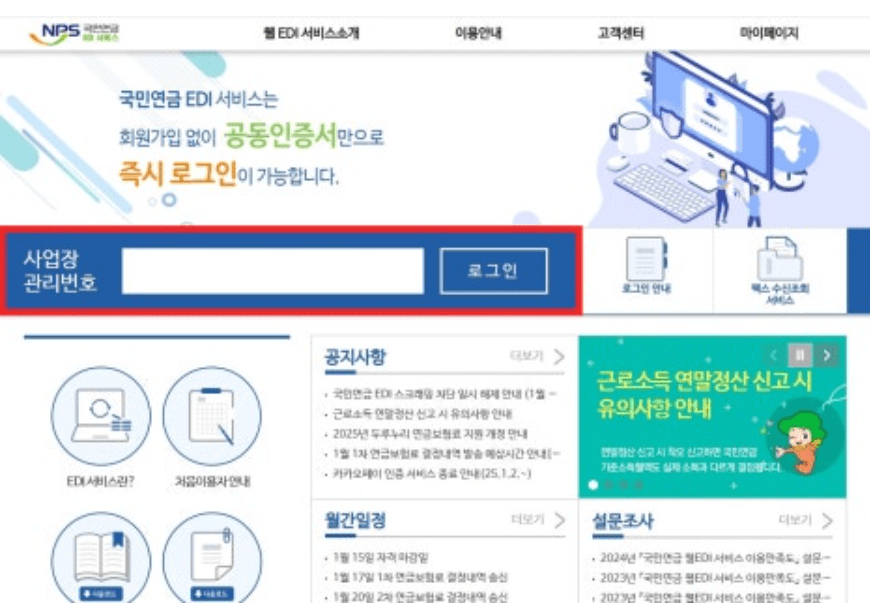 - 국민연금 EDI 또는 4대 보험 포털사이트 접속