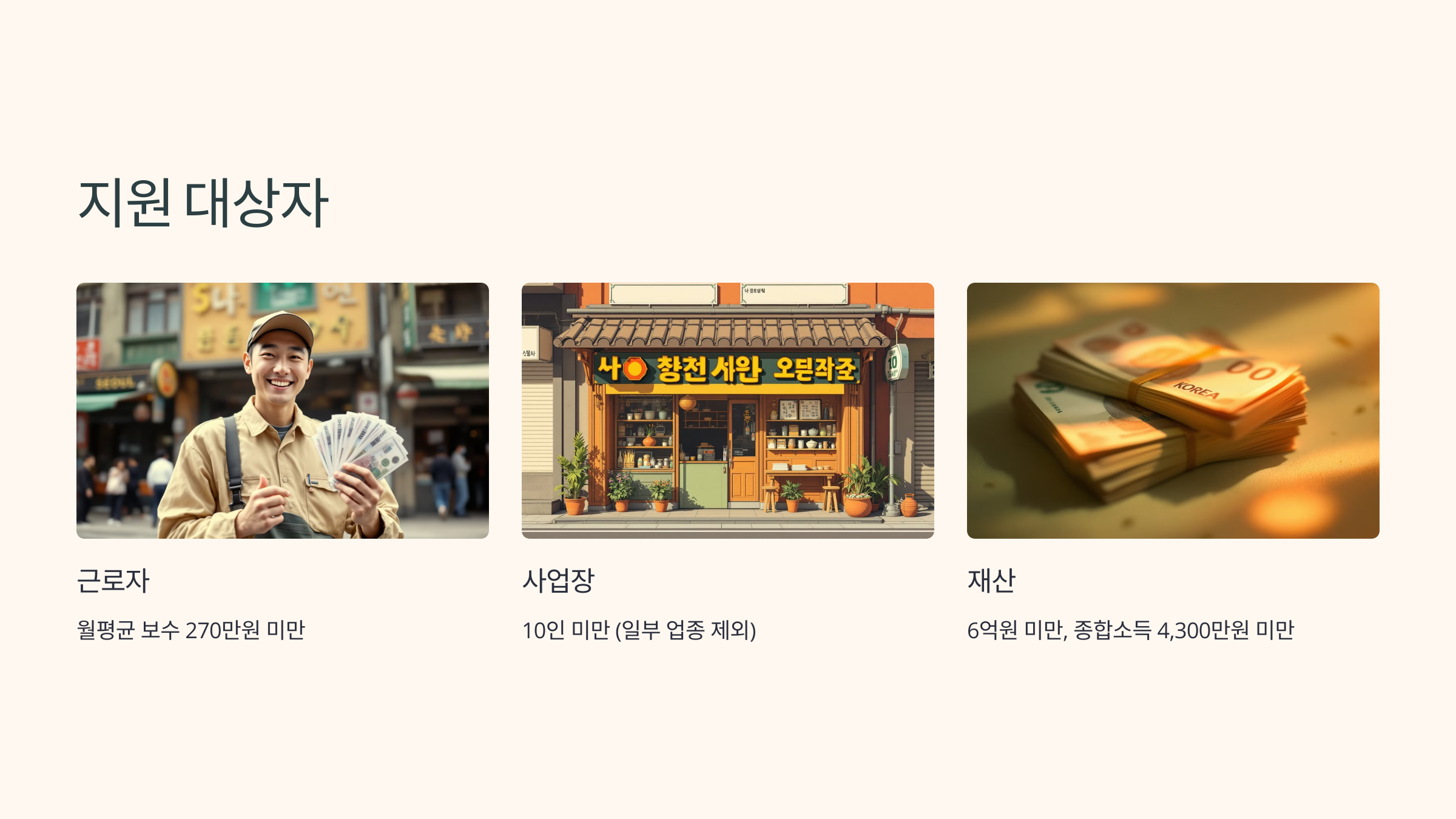 ✔ 사업장 요건: 10인 미만 사업장 (일부 업종 제외)