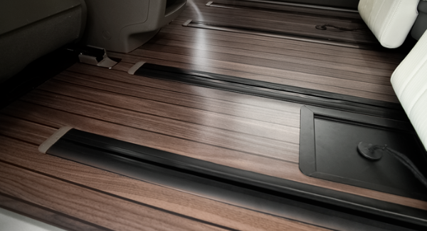 보가 클럽에서 자체 개발한 프리미엄 요트 바닥이 기본으로 적용되었습니다. 롱레일과 결합된 요트 바닥은 3열 시트를 최대 15cm 뒤로 이동시킬 수 있어 넓은 공간을 제공합니다. 또한, 2열 공간을 마치 4인승 차량처럼 활용할 수 있는 점이 큰 장점입니다. 싱킹 시트 뒷부분까지 정갈하게 마감되어 고급스러운 실내 분위기를 연출합니다.