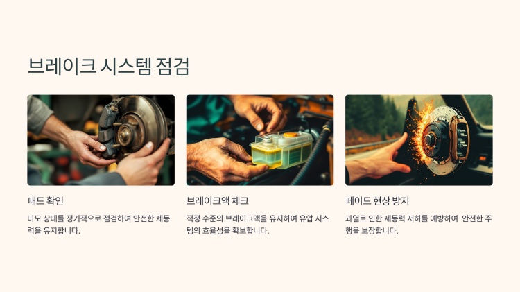 여름철 뜨거운 노면에서 브레이크를 자주 사용하면 패드와 라이닝이 가열되어 제동력이 저하되는 페이드 현상이 발생할 수 있습니다. 이를 방지하기 위해서는 브레이크 패드와 라이닝, 브레이크액의 상태를 정기적으로 점검하고, 필요시 교체하는 것이 안전 운행에 도움이 됩니다.