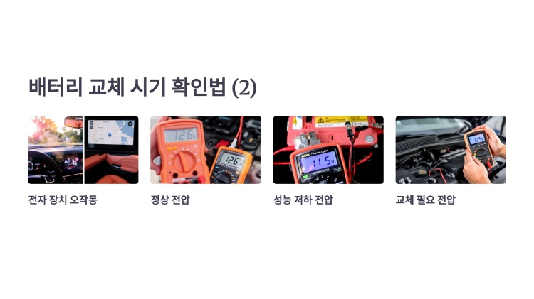 정비소에서 배터리 상태를 점검받거나, 직접 배터리 전압을 측정해 보는 것도 좋은 방법입니다. 정기적으로 점검하면 갑작스러운 방전 사고를 예방할 수 있습니다.