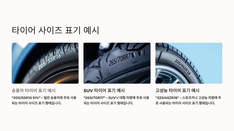 📌 타이어 사이즈 표기 예시 ; "205/55R16 91V"