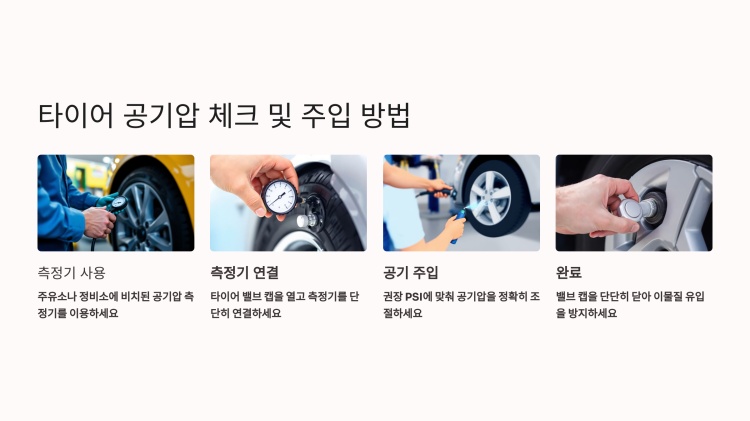 🚛 SUV나 대형 차량은 더 높은 공기압(35~40PSI)이 필요할 수 있음