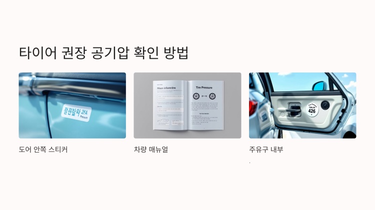 ✅ 차량 제조사의 권장 공기압 확인 방법