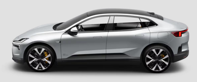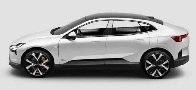 폴스타 4는 공기역학적으로 설계된 차체와 날카로운 전면부 라인이 특징입니다.