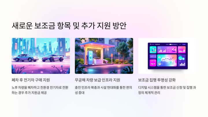 2025년 개정된 정책은 단순한 보조금 지원을 넘어 환경과 안전성 강화를 목표로 추가 혜택을 제공합니다.